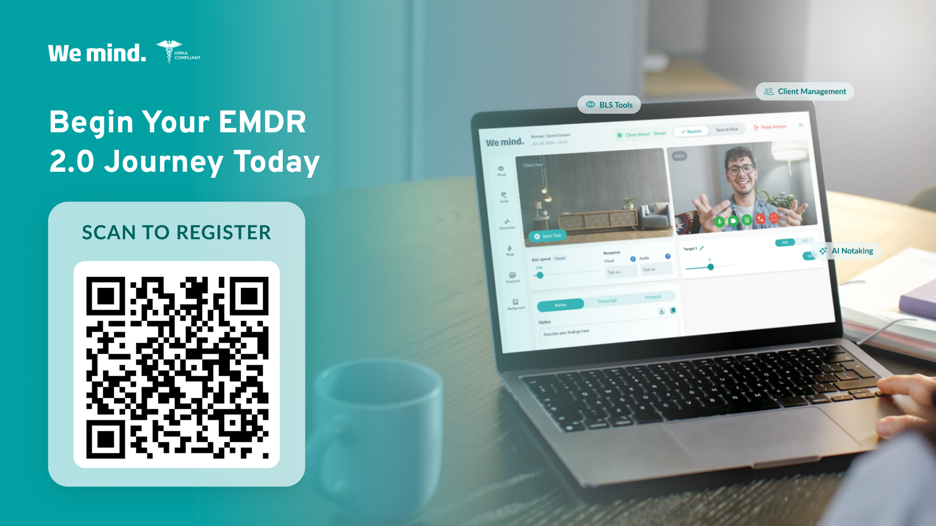 Exclusive for ETT participants: try WeMind, an all-in-one EMDR 2.0 platform that supports working memory taxation, activation and clinical documentation. Through our website, you receive a 1-month free trial to explore the platform. In addition, when you purchase an ETT course or consultation, you will receive an extra 3-month free trial of WeMind. For more information and to register, click the button below or scan the QR code to activate the offer.